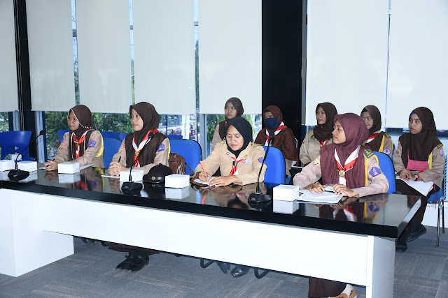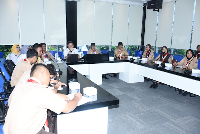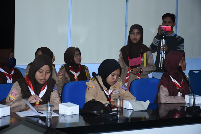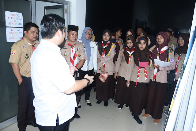 Dalam kunjungan ke Dinkominfo Muba ini ada 20 orang pramuka Saka Pariwisata yang hadir, mereka terlihat sangat antusias menerima materi dari Sekretaris Dinkominfo Muba Dicky Meiriando dengan judul “Menjadi Pramuka Generasi Z”.