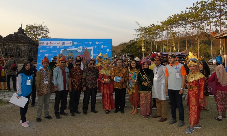 Sleman, Yogyakarta – Dihadapan 41 Negara Saka Pariwisata Muba Binaan Dinas Pemuda Olahraga dan Pariwisata Musi Banyuasin (Dispopar Muba) tampilkan Tari Sambut Setabik pada Opening Ceremony Java Summer Camp 2019 bertempat di Candi Banyunibo Kabupaten Sleman Provinsi Daerah Istimewa Yogyakarta. (11/10/2019).