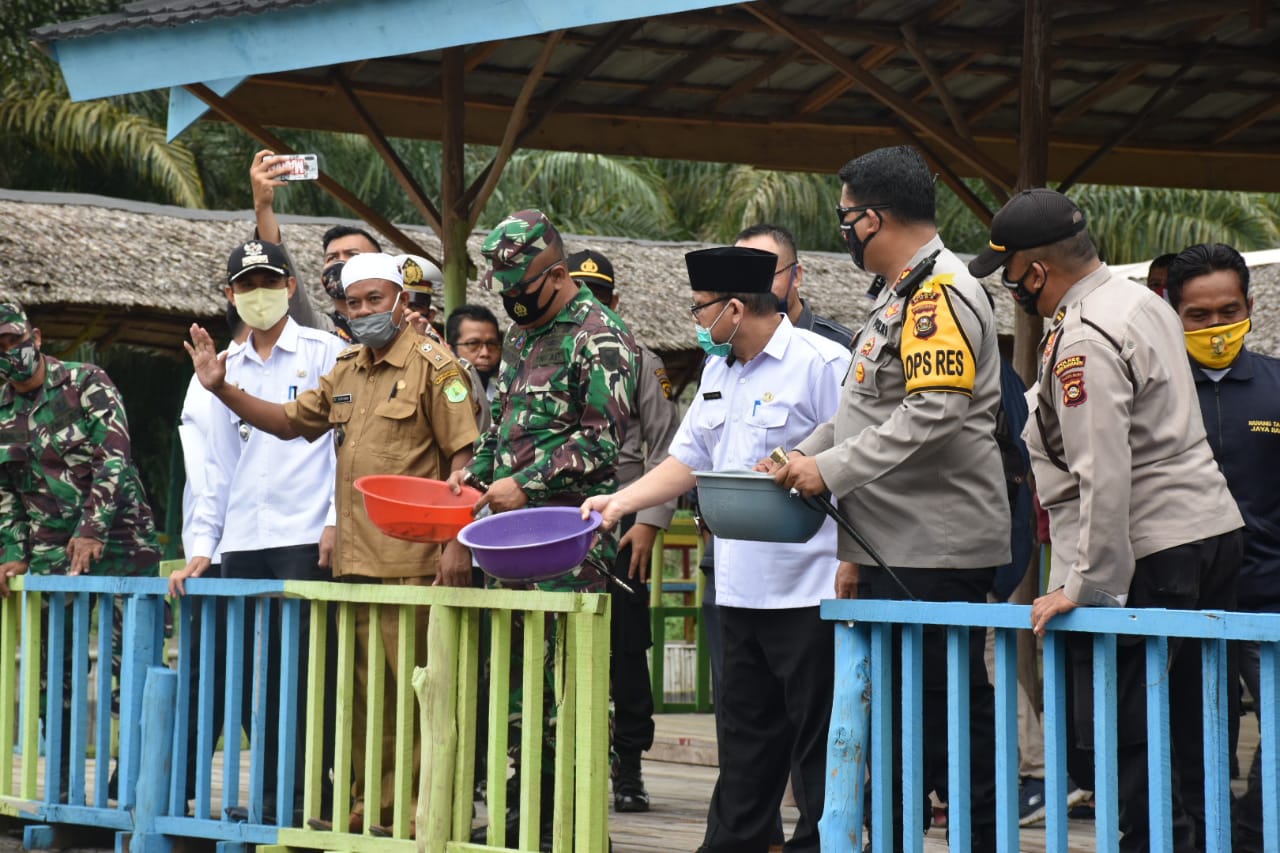 Acara diakhiri dengan pelepasan benih ikan nila, penanaman bibit cabe, dan semangka serta panen ikan guramai, patin, dan pepaya di Desa Gajah Mati Kecamatan Babat Supat.