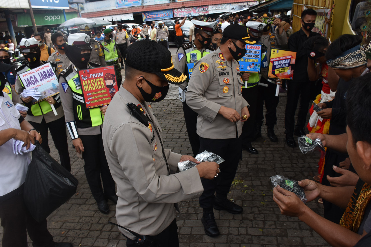 “Sesuai dengan Inpres no 5 tahun 2020 tentang peningkatan disiplin dan penegakan hukum protokol kesehatan dalam pencegahan dan pengendalian korona, kita giatkan penegakan pendisiplinan masyarakat dalam mematuhi protokol kesehatan. Hari ini kita membagikan masker kepada masyarakat sebanyak 12.000 masker di pasar dan lokasi keramaian lainnya. Diharapkan langkah ini dapat menekan penyebaran COVID-19 sehingga masyarakat dapat melakukan aktivitas kembali,”pungkasnya.