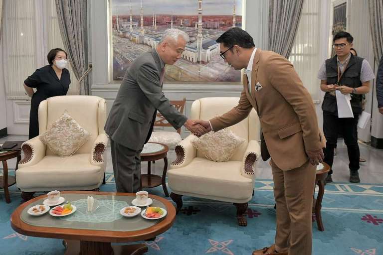 JAWA BARAT, – Gubernur Jawa Barat Ridwan Kamil menawarkan tujuh arah ekonomi baru di Jabar kepada Duta Besar Korea Selatan untuk Indonesia Lee Sang-deok saat berkunjung ke Gedung Pakuan, Kota Bandung, Selasa (28/2/2023).